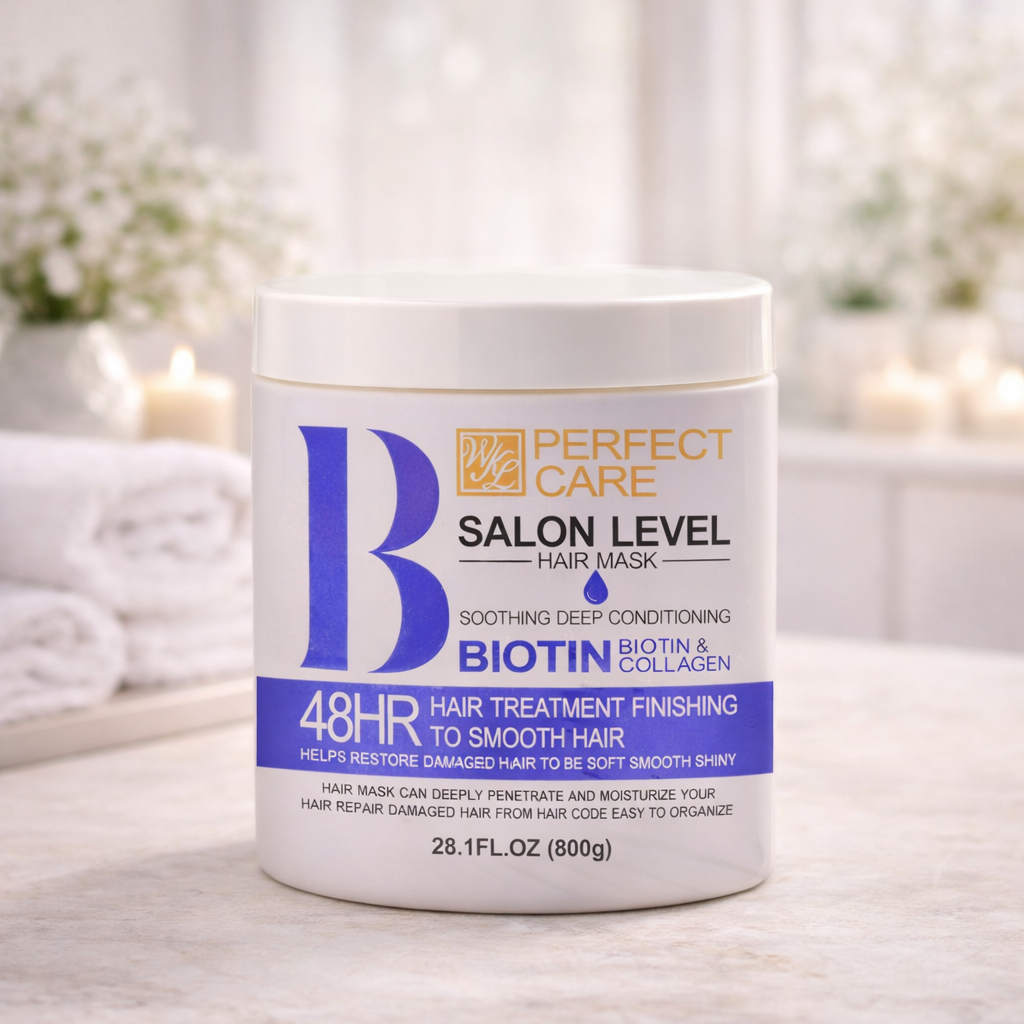 Perfect Care Biotin & Collagen Salon Level Hair Mask delivers deep conditioning to help restore damaged, weak, and lifeless hair. Enriched with biotin and collagen, this intensive treatment strengthens hair fibers, improves elasticity, and enhances overall hair texture.